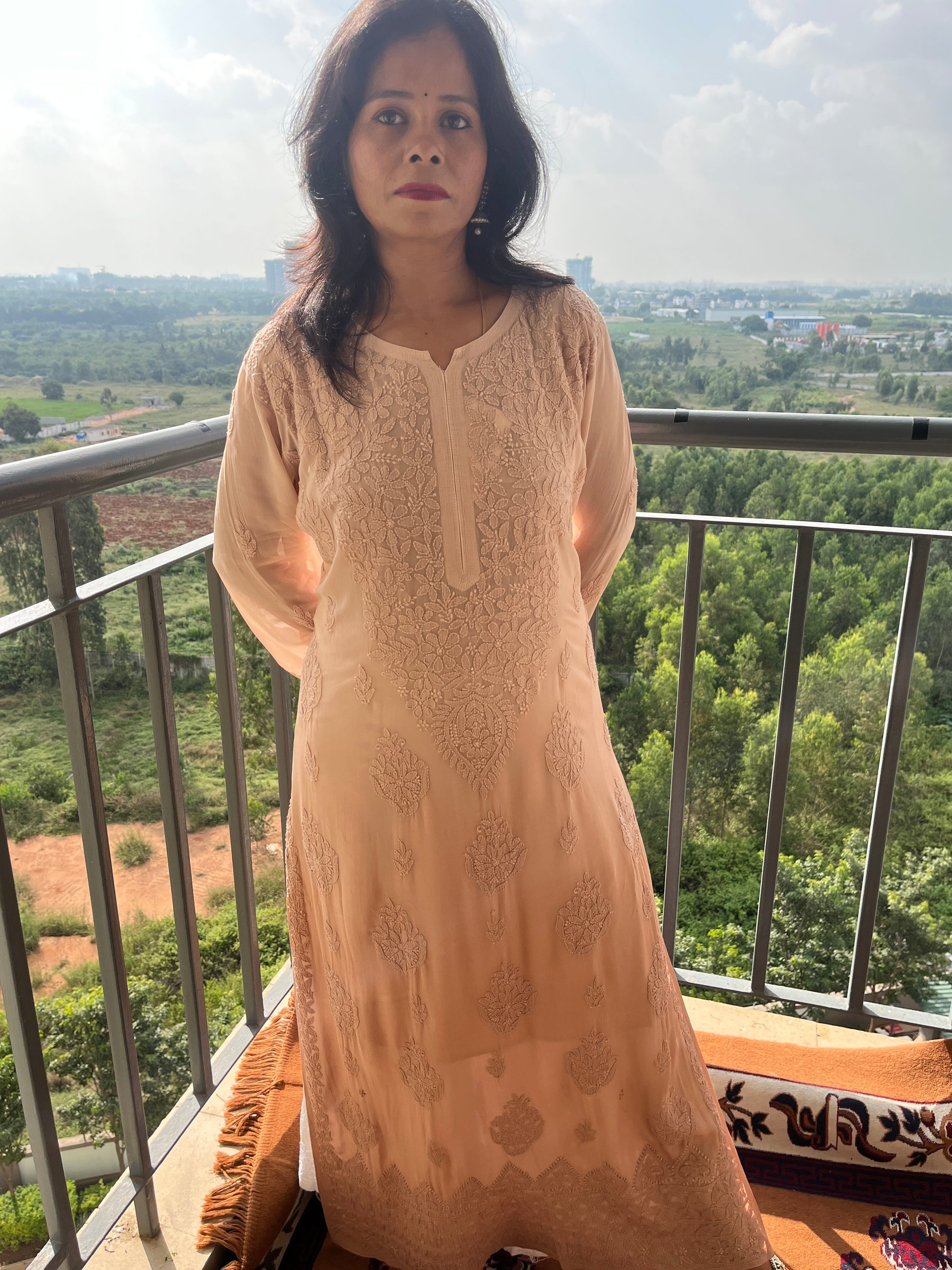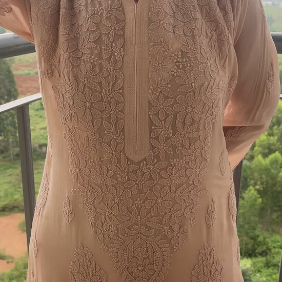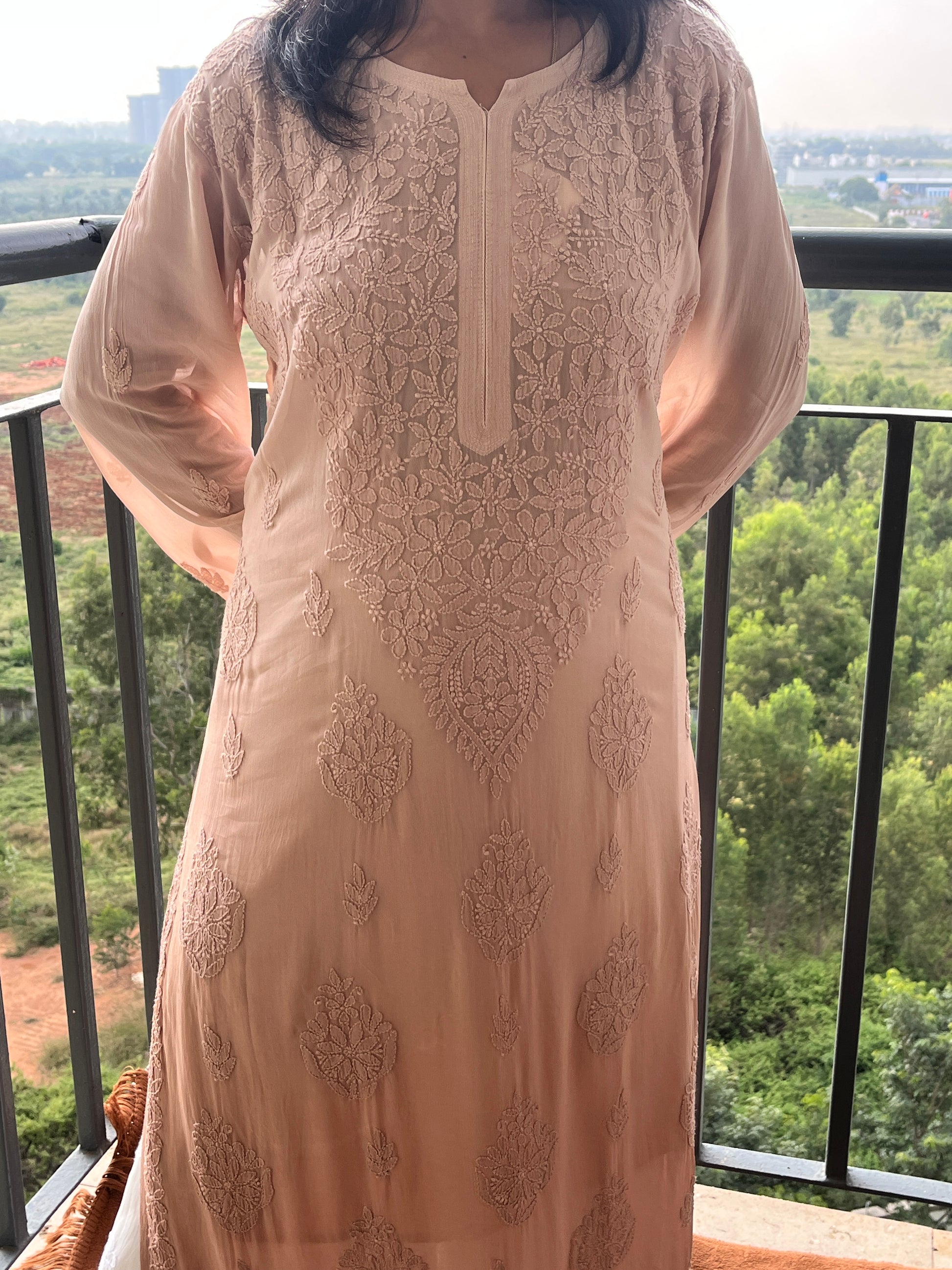 Viscose Bakhiya Heavy Chikankari Long Kurta - ombre brown
