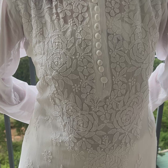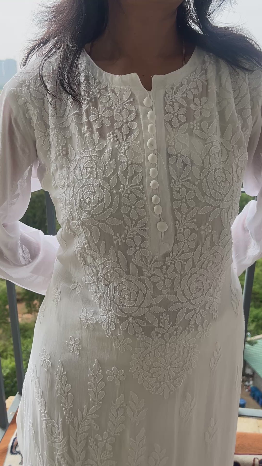Viscose Chikankari Solid Women's Long Kurta set with Inner - White